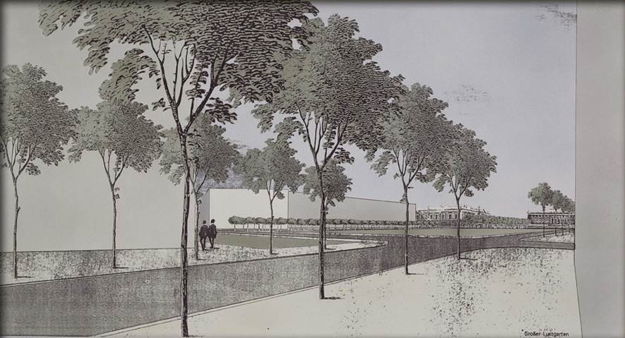 Im Flusslauf der Spree liegt die Fischerinsel, sie bot den ersten Ansiedlungen Schutz und war Furt über die Spree. Als Bild für diese Siedlung dient die Vorstellung von einem Ort der von einzelnen Hütten und später von Häusern umgeben ist. Das Bild von Solitären, die sich um einen öffentlichen Raum gruppieren ist ein Ideales Bild, vergleichbar mit einer Gemeinschaft, die sich zu einer Versammlung einfindet. Die Mitte wird nicht durch ein Gebäude, sondern durch den kleinen und großen Lustgarten bestimmt, eingefasst in einen soliden Stadtkörper.