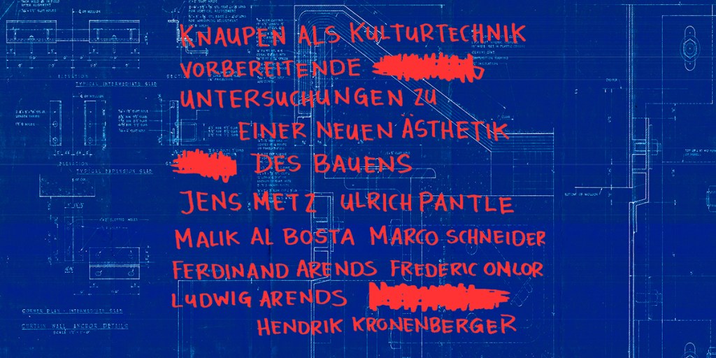 Eine rhizomatische Darstellung zeigt exemplarisch die Narration eines durch Knauber bestimmten Bauprozesses und zeichnet räumliche, zeitliche und soziale Bezüge nach. Mit Begriffen wie „Gabe“, „Lager“, „Intuition“ und „Gebäudetyp K“ werden gelebte Praktiken auf ihre vielschichtigen kulturellen Ursprünge zurückgeführt und damit das Knauben als zukunftsfähige Grundlage eines noch zu verhandelnden künftigen Ausdrucks von Baukultur zur Diskussion gestellt.