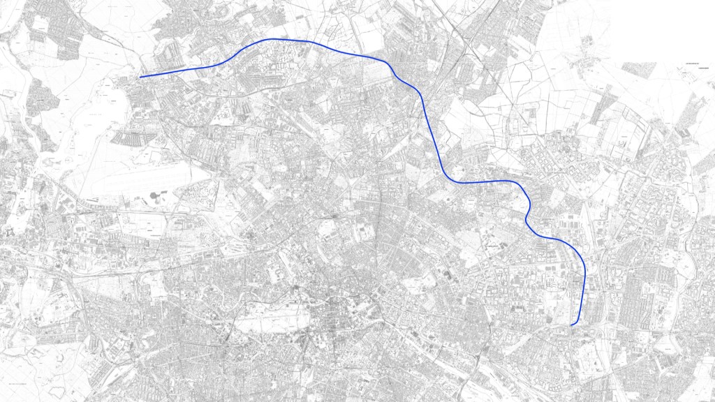 Wir sind überzeugt, dass sich die Frage, wie sich Berlin weiter entwickeln soll, nicht nur auf Gebiete innerhalb des S-Bahn-Rings (9% des Landes Berlin), oder außerhalb der Landesgrenzen (IBA Brandenburg-Berlin) beschränkt. Die Stadtteile, die hier liegen, werden nicht durch die Ausfallstraßen charakterisiert, die diese durchschneiden. Sie sind die Toten Winkel der Stadtentwicklung, und wie wir sehen können, auf jeder Fahrradfahrt oder Wanderung entlang der Industriebahnlinie von Tegel nach Friedrichsfelde, handelt es sich tatsächlich um einen riesigen städtebaulichen Schatz.